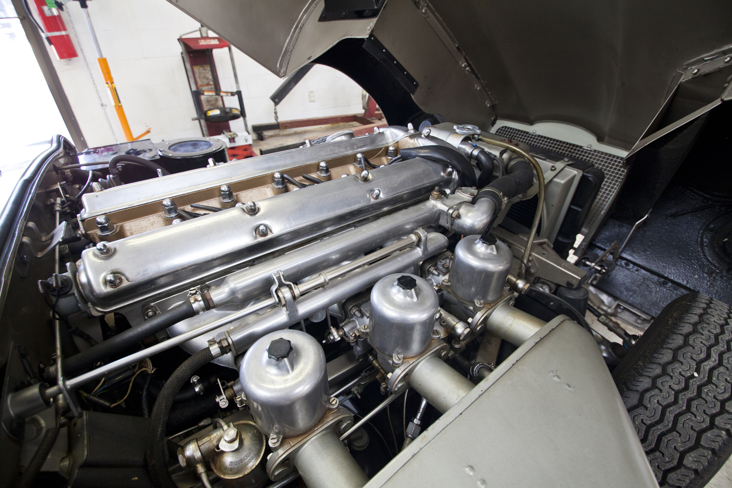 There's a reason the Jaguar E-Type is an icon. Just a beautiful, beautiful car. This one is a wonderful example. Doing some maintenance.