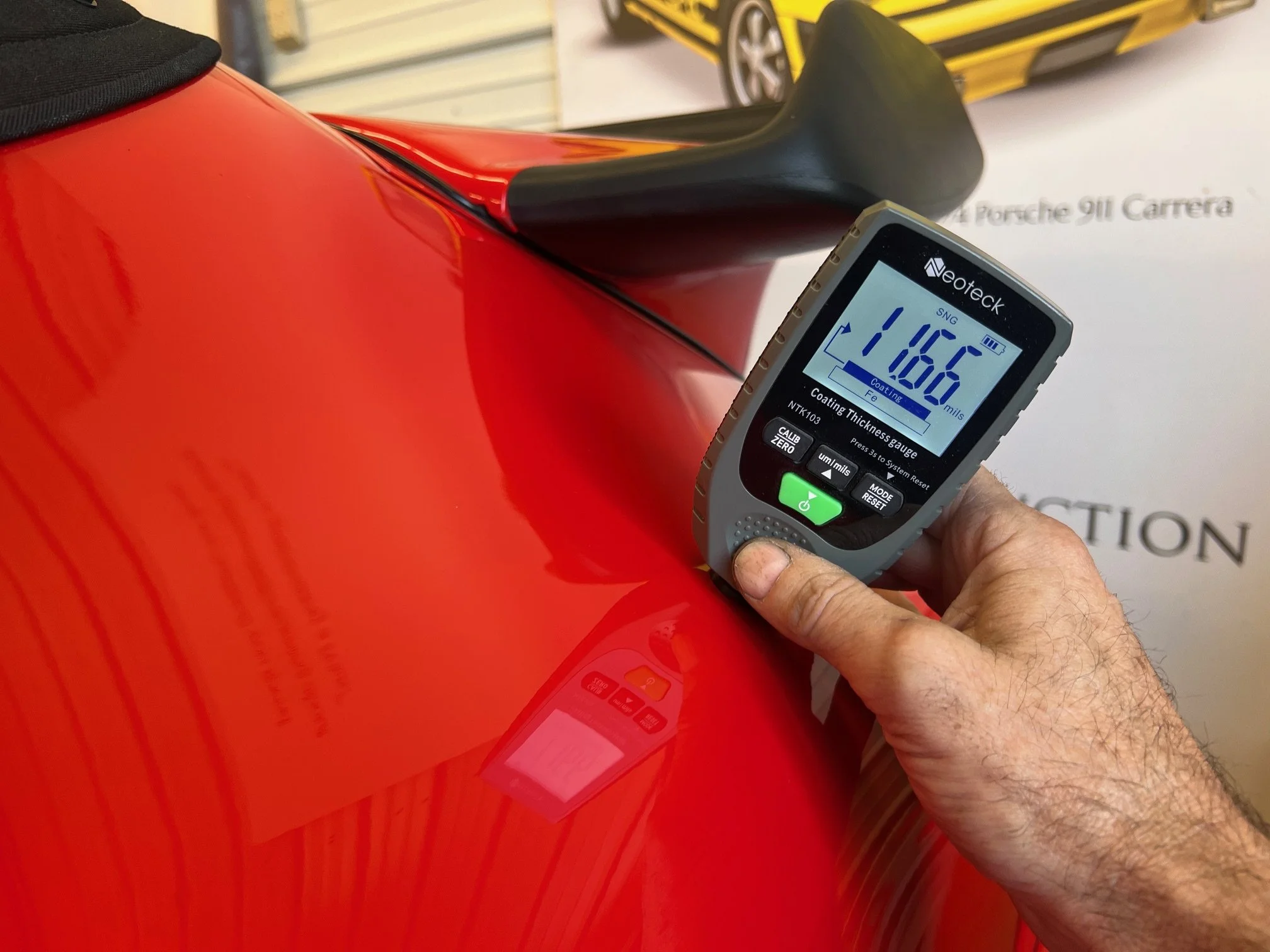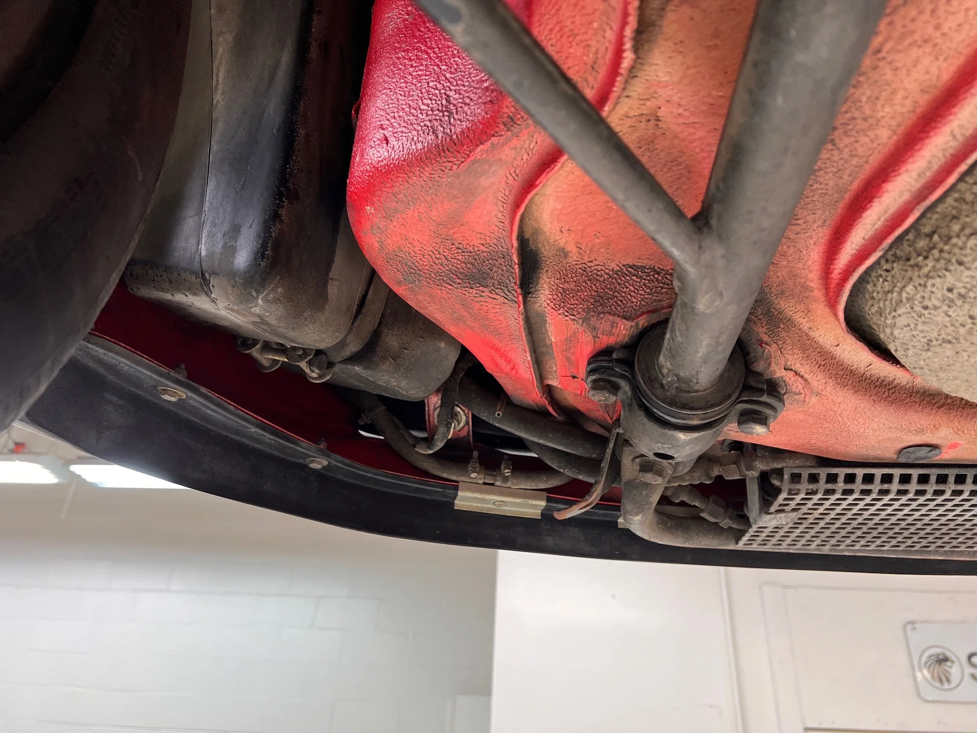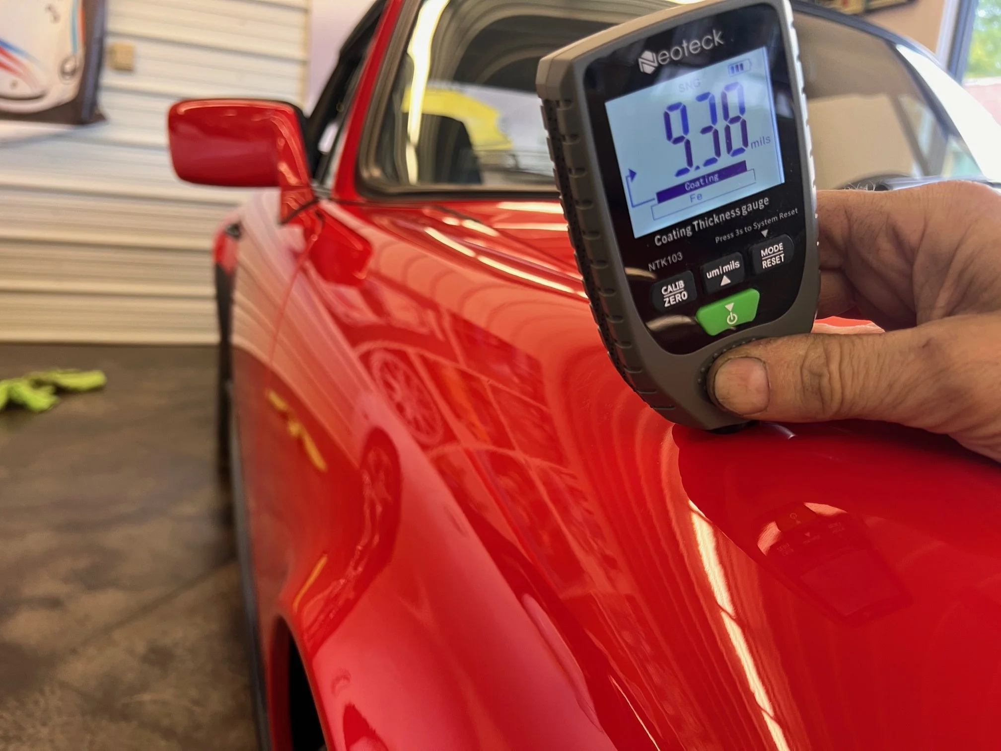 The classic Porsche Guards Red. The paint has a rich finish shine, Great condition for it’s age, with only minor driven car blemishes from age and use. The car was repainted to a high standard at some point in the cars life. Glass is in good condition, windshield is original glass. Wheels are in very good condition. Tires are new Continental Contact Sport. Canvas top in good working condition with some aging. Overall exterior black rubber trim in very good condition.