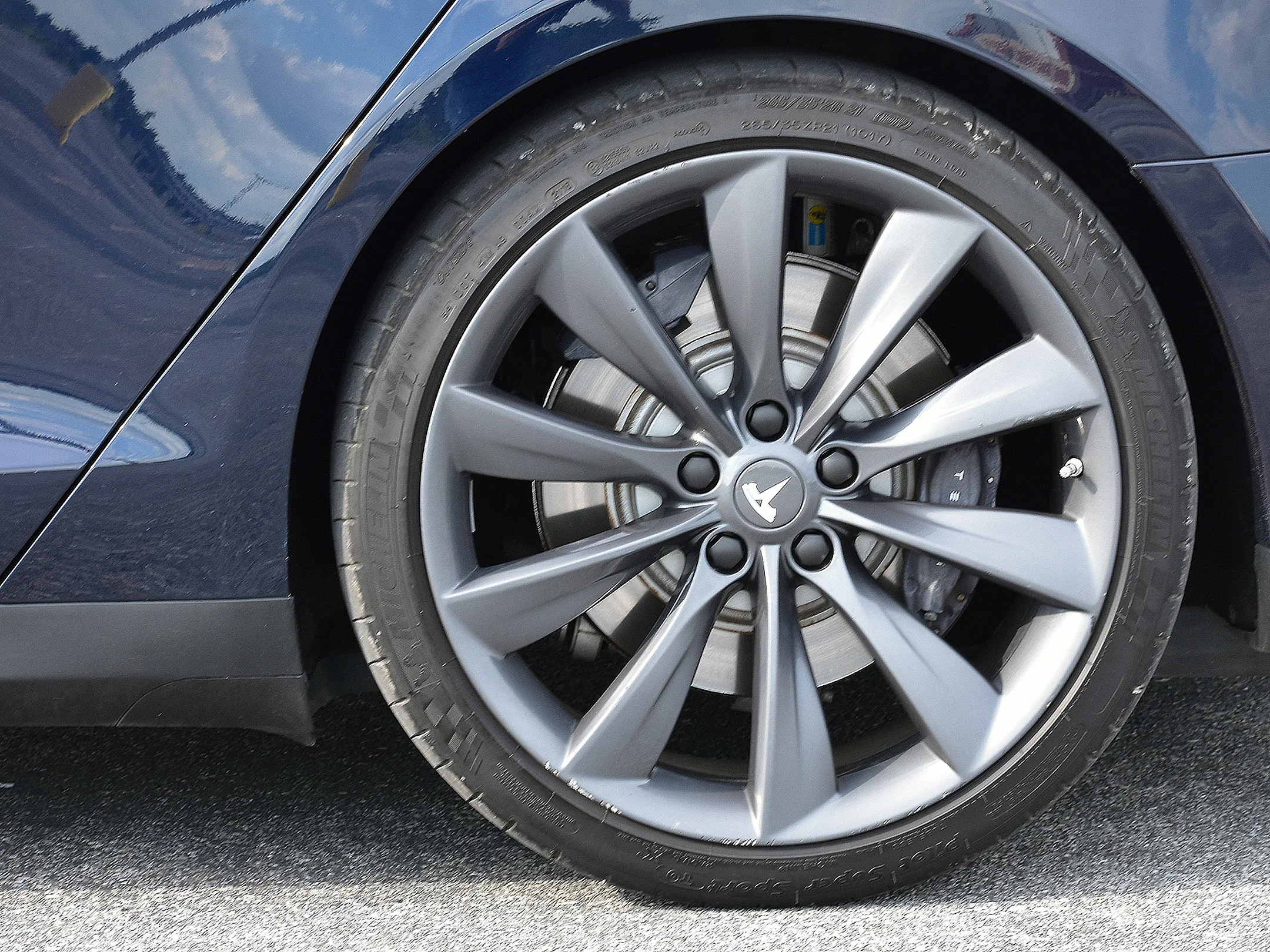 The dark blue paint is very nice, with a deep shine and only light chips and scuffs. The Glass is in excellent condition. The 21 inch wheels do have some small scuffs on the outer edge. The passenger mirror has a cosmetic blemish.