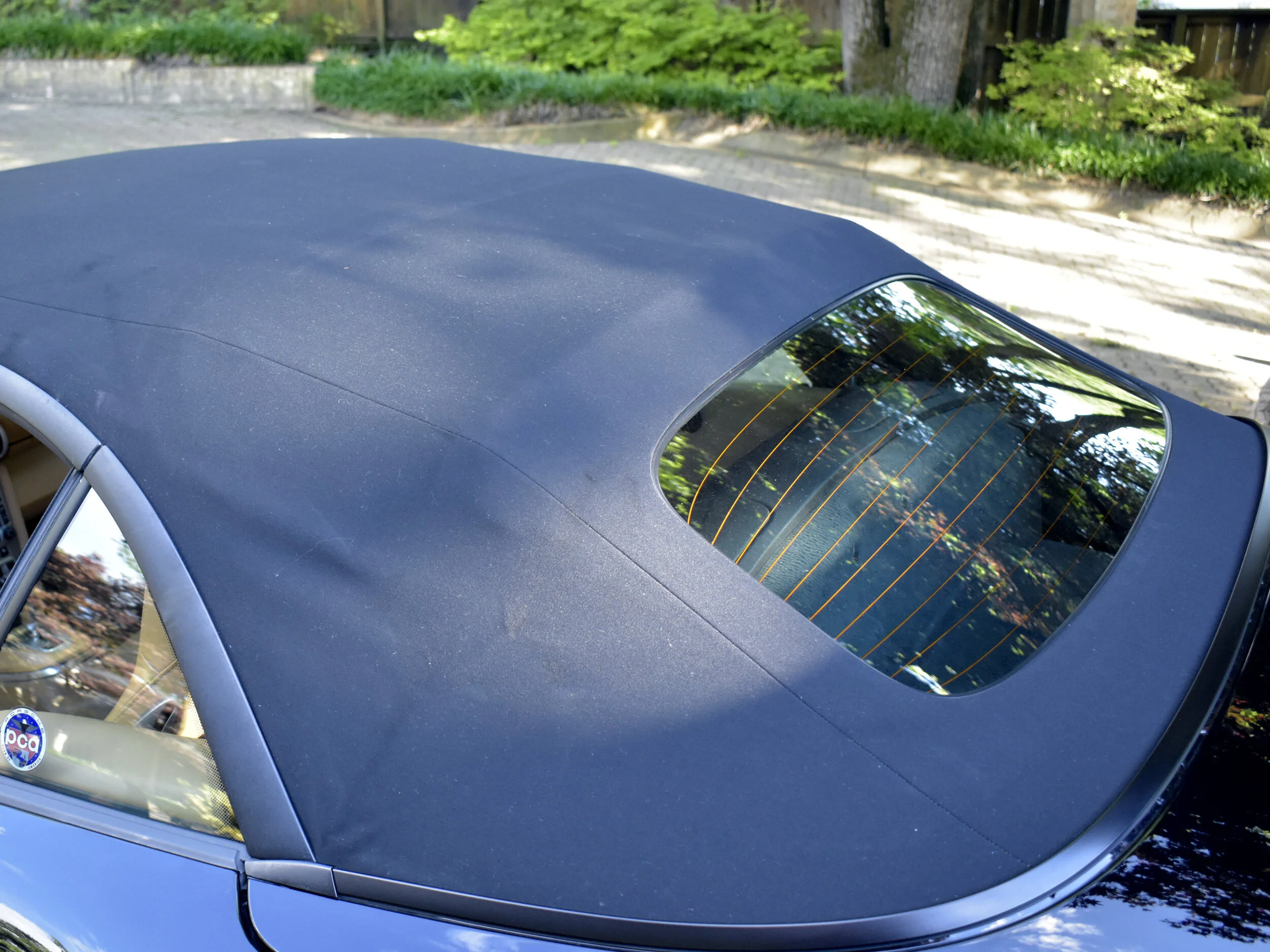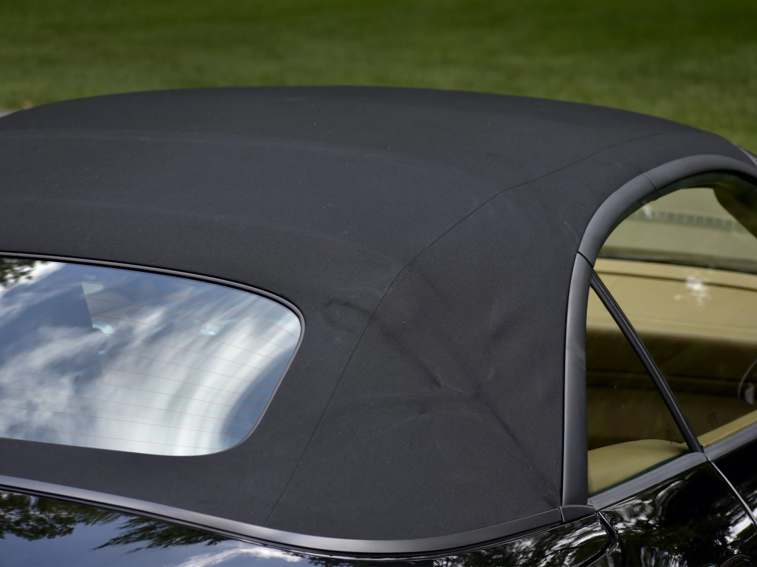 Beautiful Black factory paint. Paint was professionally detailed with a high quality Ceramic coating. Some minor and expect paint imperfection on the front leading edge, bumper area. Wheels are in excellent. All of the glass is in great condition. Canvas top is in great condition. Power top in great condition.