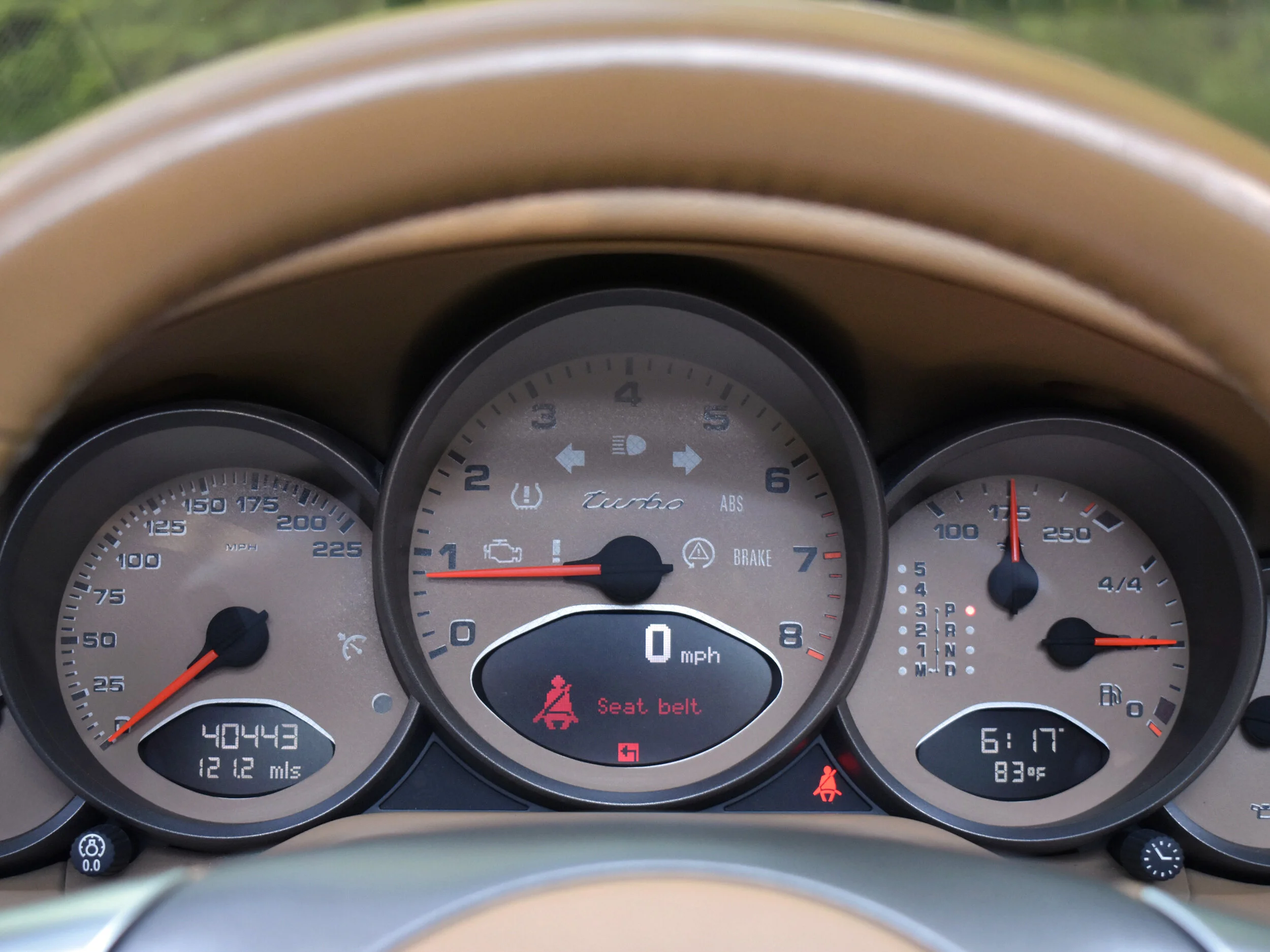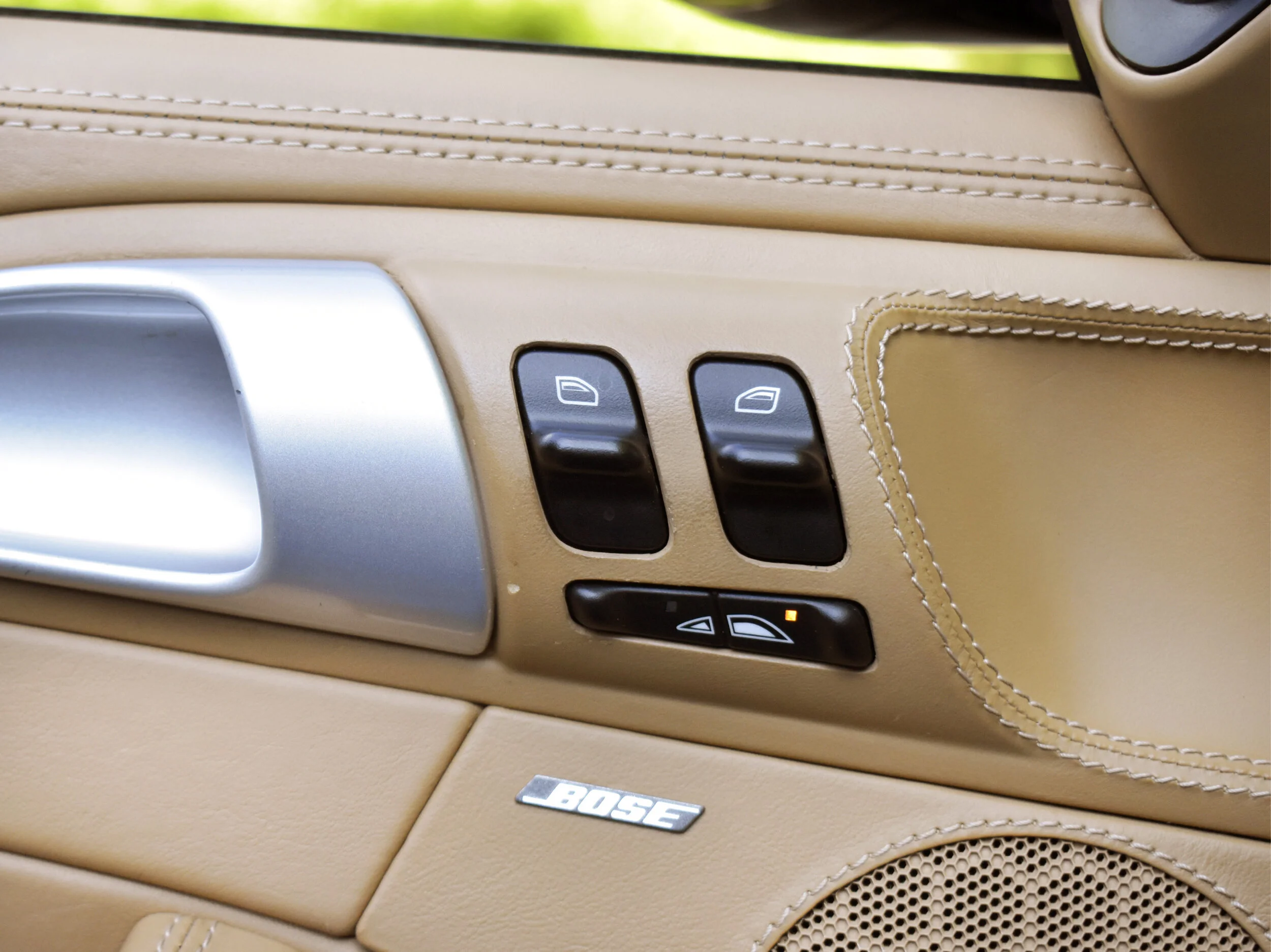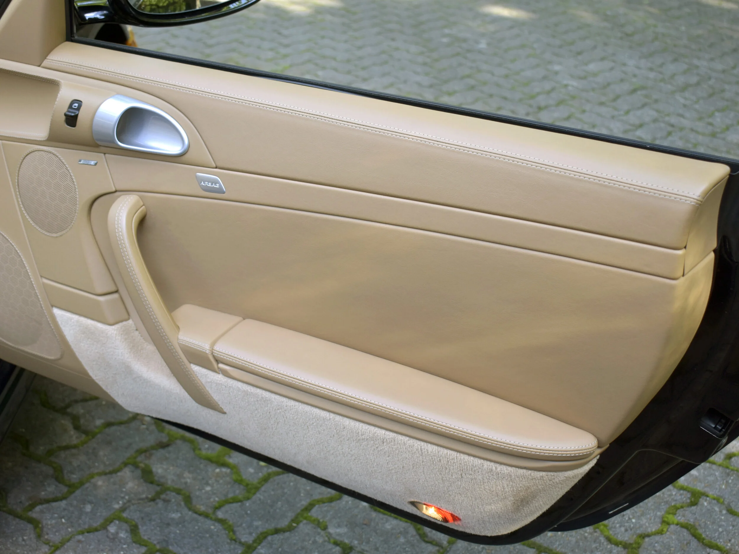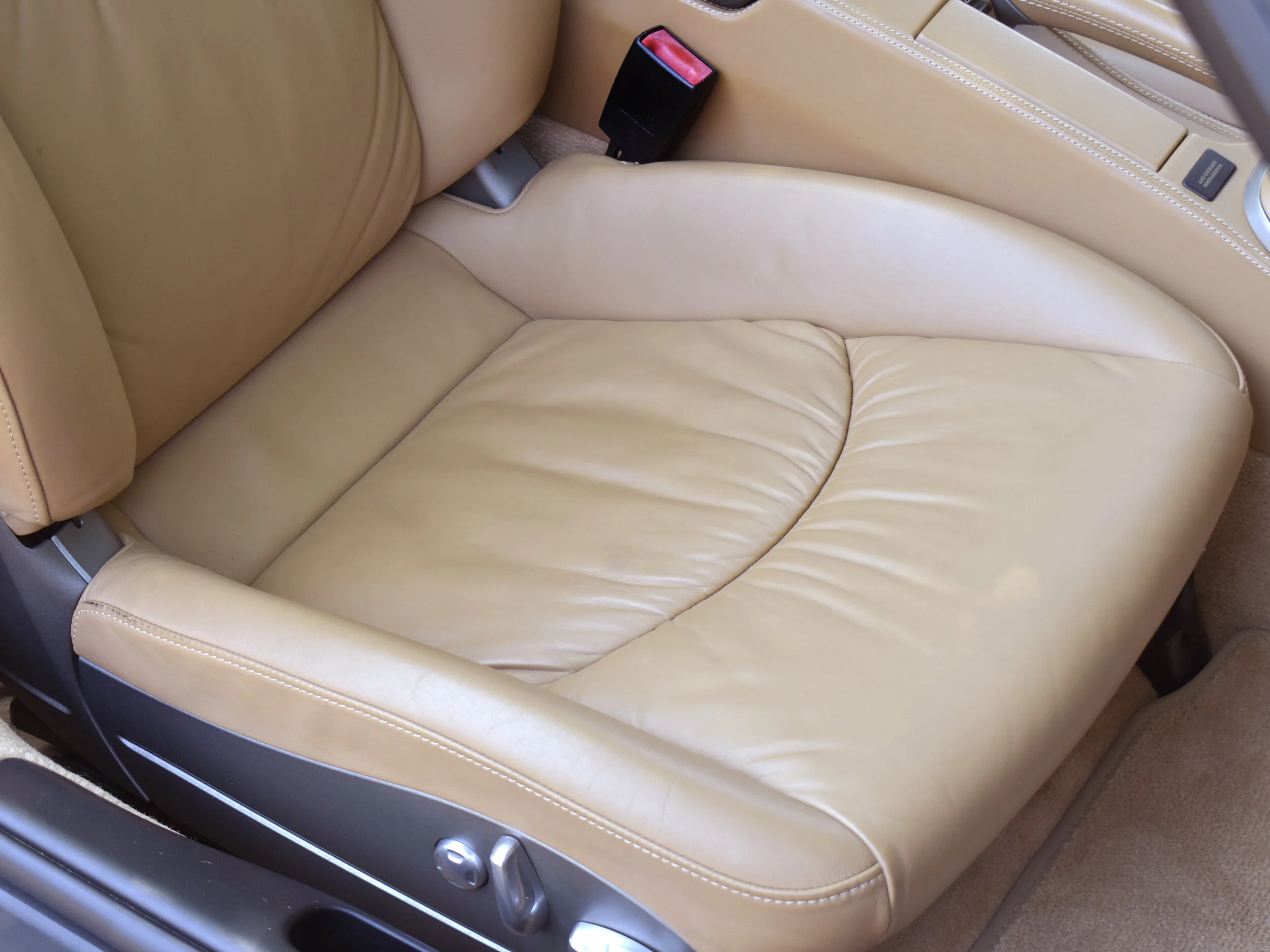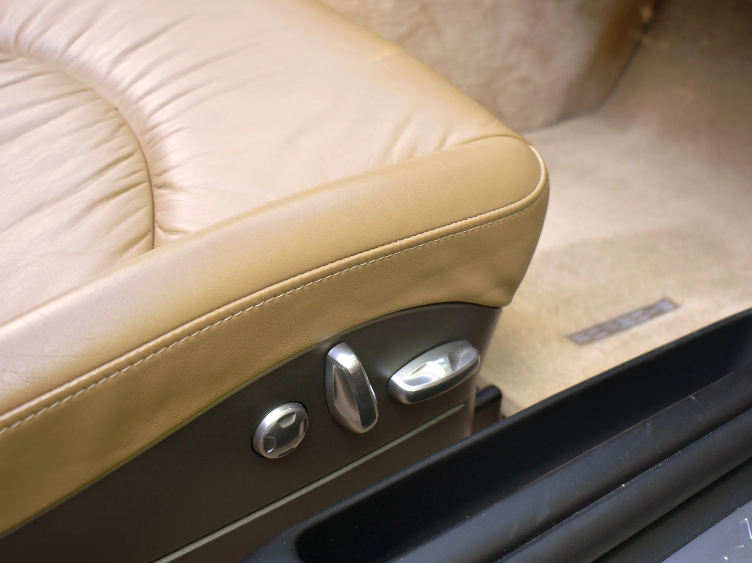 The Sand Beige interior in this car is very clean and in excellent condition. Very minor wear. The car was optioned with the full leather package. Leather dash, seats, center console, door panels, etc. Optional instrument dial in Sand beige. Power and Heated front seat. Thicker steering wheel, BOSE sound system.