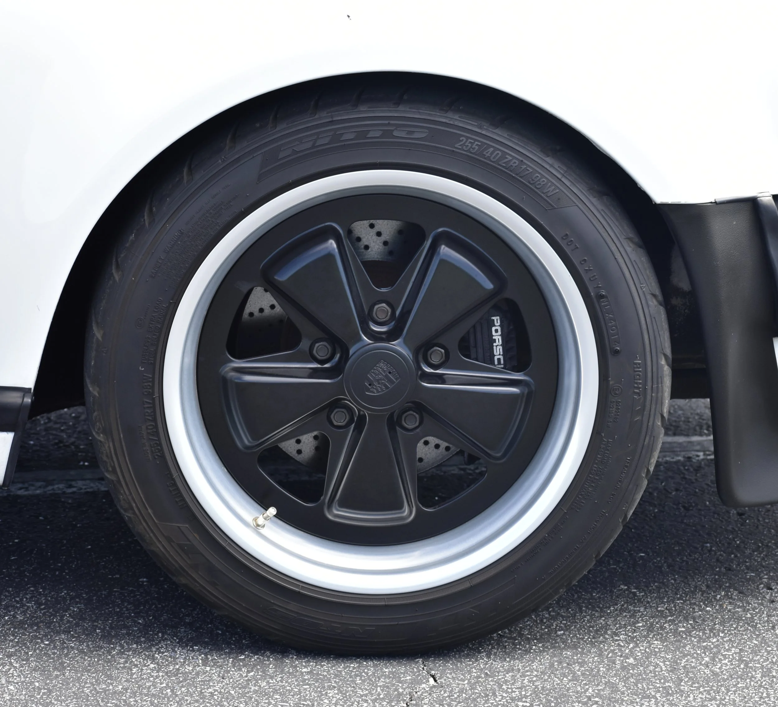 The Grand Prix White paint is in very good condition. Some minor blemishes, yet expected for it’s age. The glass is in excellent condition. The rubber trim is in good condition overall, with only minor blemishes. Upgrades: The 17 wheels are in near new condition, Porsche 993 aero door mirrors.